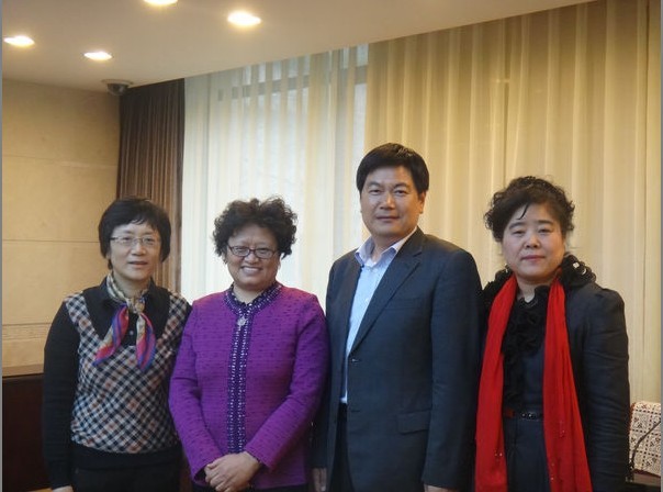 全國政協委員、全國政協教科文衛體委員副主任、教育部副部長李衛紅(左二),全國政協委員、民建中央常委 蘇華(右二),全國政協委員 孫潔(左一),中華職教社研究部主任 劉志芳(右一)